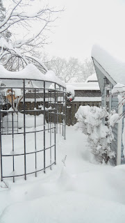 This is the view from the lounge's bay window & look at natures design. It took my breathe away on how the snow scalloped around the birds aviary as the sun shone & the day really did look beautiful...cold but beautiful from the inside looking out. lol