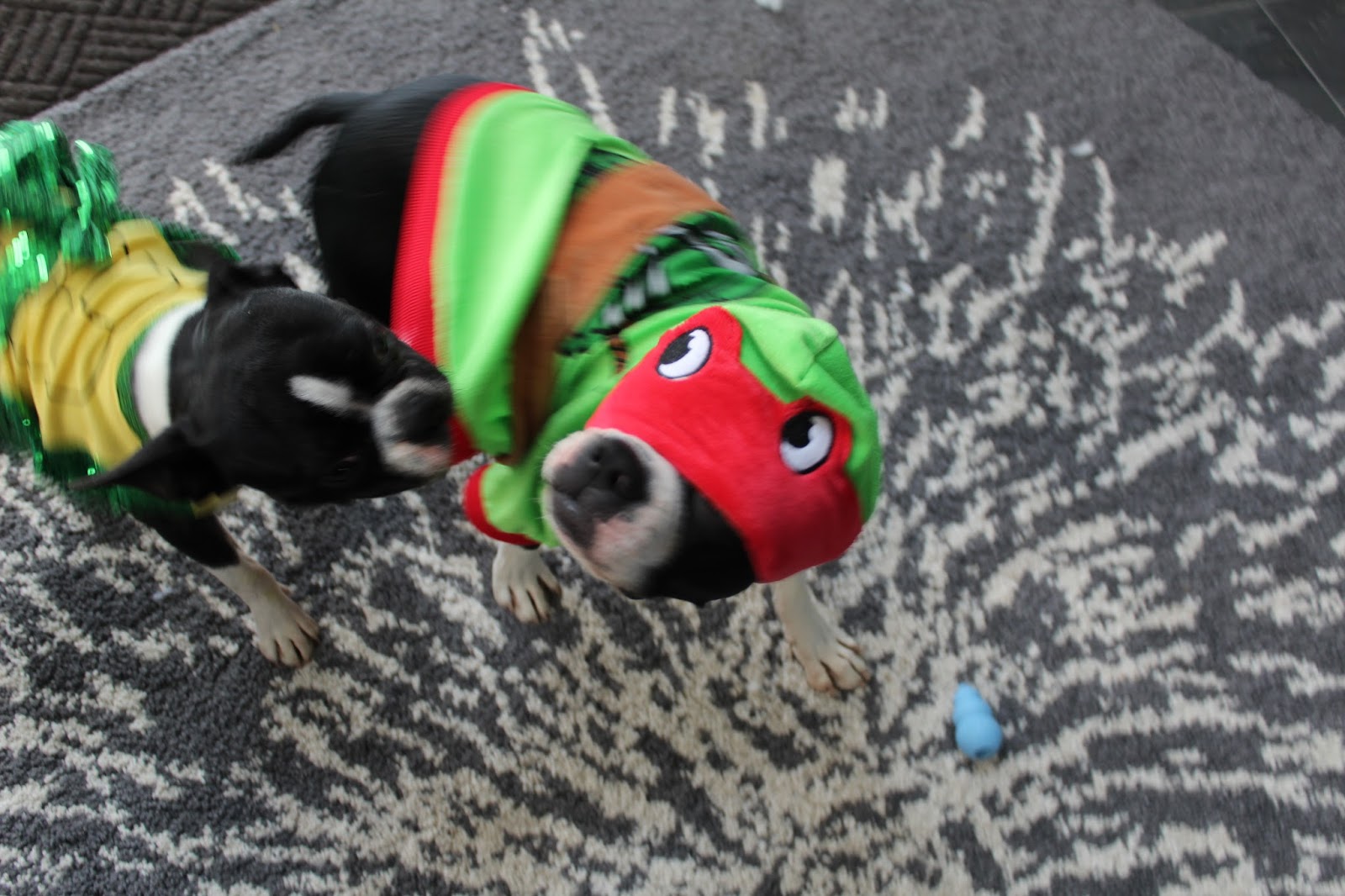 The costumes fit them perfectly! And they both love to be 'fighting turtles' in them! lol