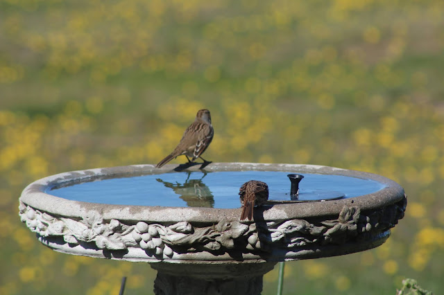 The birdbath is popular place still to have a drink of freshwater or a dip in the water to clean up.