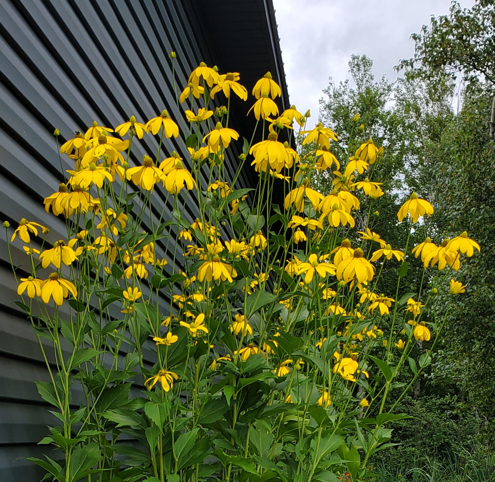 The black-eyed Susans are thriving this year! The potting shed now has a variety of colours & the limelight hydrangea loves its new area next to the rain barrel! And had a surprise for me! I had put the bulbs in the potting shed to dry them out...
