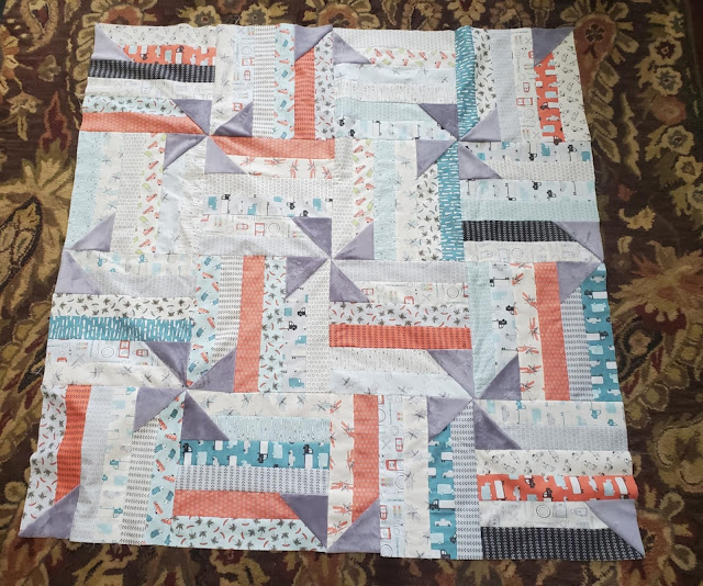 His soft pinwheel quilt came out beautiful, Rose did a fantastic job on the quilting of it, she always does such fine work on her longarm quilting frame.