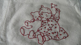 Doesn't she look like on of those Campbell soup kids? Two other girlfriends are doing this project too. Bev & Lynn are at different stages & both of them do better embroidery than me. As I've heard, "Theory will inform, but practice convinces." This is a bit of a fun challenge for me.